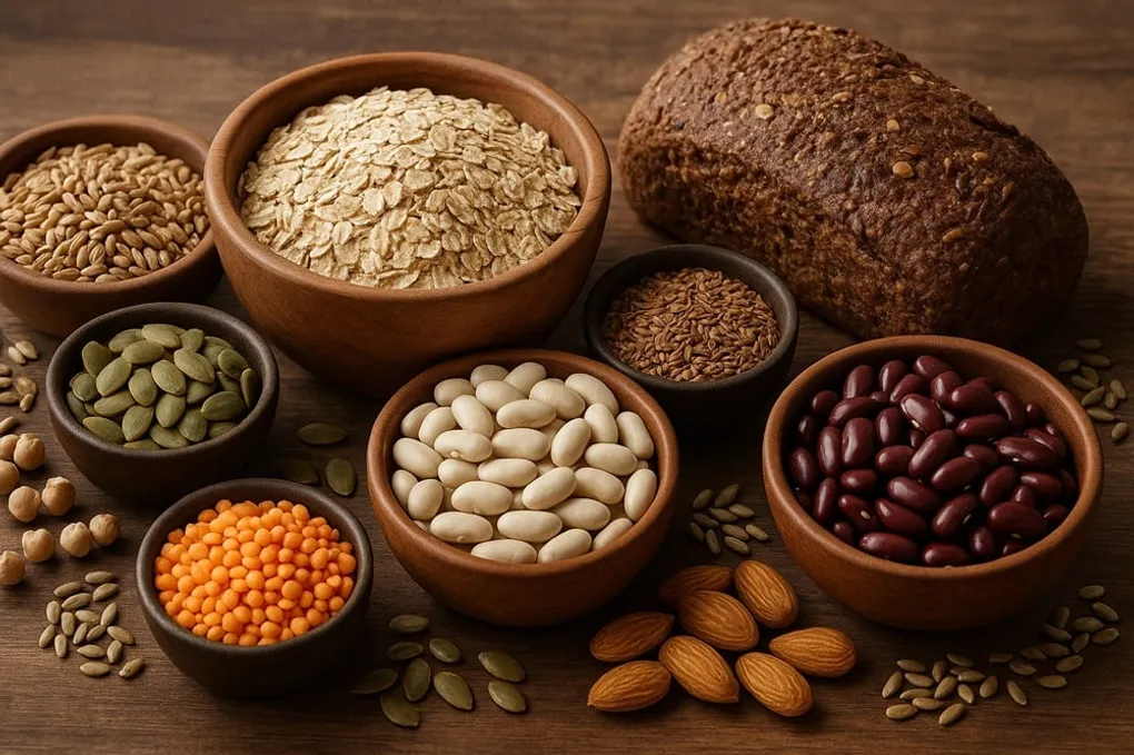 - Vollkorn: Haferflocken, Vollkornbrot, Naturreis, Dinkel